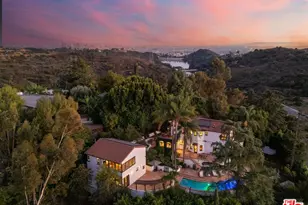 SECLUDED & PRIVATE 1/2 ACRE CELEBRITY OASIS! Can be purchased fully furnished. Welcome to "Castillo de la Esperanza", a breathtaking private gated 2-home compound featuring 2 distinct residences - an iconic 1930s Mediterranean masterpiece (4,028 sq ft, per appraiser; 4 beds, 4 baths) & a 2016 two-story guest house (2,261 sq ft, estimated; 1-2 beds, 2 baths). Together, these homes total approximately 6,289 sq ft & are perched in the exclusive Hollywood Hills. Known as the "Castle of Hope," this legendary estate beautifully captures the allure of Old Hollywood while offering every modern luxury, making it a once-in-a-lifetime opportunity for those seeking an entertainer's dream property that boasts both legacy & vibe. Once inside the gates, you're transported to a magical setting reminiscent of an Italian or Spanish hilltop villa. The estate feels like a private oasis, surrounded by panoramic views of the city, mountains, & valley. As a bonus, watch the fireworks over Universal Studios' Hogwarts Castle from your own backyard, adding a touch of enchantment to this already extraordinary home. Set on over half an acre of expertly landscaped grounds, the walled & gated estate ensures complete privacy, enhanced by two separate automobile entrances that lead to a 3-car garage & adjacent carport. The breathtaking views, combined with the property's seclusion, offer the ultimate blend of privacy & exclusivity. Entering through the grand courtyard into the main residence, you'll be captivated by vaulted ceilings, intricate detailing, & the classic grandeur reminiscent of the rockstars, moguls, & creative legends who once called this sanctuary home. The oversized living room exudes opulence with its soaring ceilings, dramatic fireplace, & intimate library nook, offering the ideal setting for lavish gatherings or cozy nights in. The formal dining room comfortably seats 12 to seat the full band & families & opens onto one of several elegant patios, perfect for alfresco dining. A thoughtfully designed chef's kitchen, with bar seating & a breakfast nook, provides a chic, informal space for entertaining close friends or enjoying intimate moments with loved ones. Each of the four bedrooms in the main house is its own retreat, brimming with character & offering stunning treetop and/or city views. The architectural integrity of the home has been preserved with hand-laid Spanish tiles & vintage-inspired fixtures, while smart updates seamlessly blend history with modernity. The luxurious primary suite boasts large "Romeo & Juliet" sliding glass doors with wrought iron railings frame epic panoramic views, evoking the romance of a Mediterranean villa. The two-story guest house offers versatile living spaces, making it ideal for a variety of uses. The main level includes a spacious room (bedroom), bathroom, kitchenette & laundry facilities, while the second floor features a soaring ceiling, living area with a kitchenette, bedroom & another bath. The lower level houses an impressive wine cellar & gym, adding even more luxury & functionality to the estate. An additional 3rd guest quarters with a separate entrance offers further flexibility. The grounds of "Castillo de la Esperanza" are as enchanting as the home itself. Terraces, courtyards, & fountains blend seamlessly with a sparkling pool & spa, while verdant, water-wise gardens with an irrigation system surround the property. This backyard oasis, with its rustic poolside pavilion, is perfect for hosting exclusive soires or creating unforgettable moments with guests. With its storied past having housed rockstars & cosmetic moguls to its breathtaking views, "Castillo de la Esperanza" is more than just a home; it's a statement. Whether you're seeking a luxurious retreat or a show stopping venue for entertaining Hollywood's elite, this estate offers the ultimate blend of history, glamour, & rockstar energy. A generational estate for the true connoisseur of life, love, & legend. By Appointment Only!