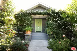 Echo Park's Secret Garden - the residence and studio of fine artist Mimi Lauter. Featured in Architectural Digest, this surprising and delightful bungalow garden home, studio, and grounds is as unassuming as it is fantastical. Open the gate and past a discrete hedge, you are greeted by an abundance of colorful blooming roses, salvias, bearded iris and climbing roses framing a 1923 Craftsman. Within, color washed walls create a cool refuge, with well-proportioned living area and dining areas peering out to the low slung front porch. The kitchen features lots of storage and a brand new refrigerator. Two bedrooms and a large hall bathroom plus laundry area complete the 900sf home. Stepping outside on to the pink terrace ignites a garden fantasy come to life. While purple wisteria winds toward an overhead trellis, colorful Zia zellige tiles intermix with custom ceramic tiles by artist Christopher Brody, grounding the space as a portal into this polychrome garden paradise. Unsurprisingly, Lauter's large scale pastel and oil works, published and shown globally, is largely informed and inspired by this very place. The relationship between home, nature, and art is deeply symbiotic, with the artist's studio perfectly situated amidst the garden with high ceilings, gorgeous natural light, and wonderful views into the backyard. Nearby, a large raised garden area features blueberries, sweet peas, artichokes, and summer veggie and herbs. Constructed entirely by the artist over her years of ownership, the gardens are an ever-blooming and evolving immersive field of vibrant color, delicious smells, soft shapes, and meditative moments. Various pathways traverse a central blooming arch while garden 'rooms' and an array of fruit bearing trees provide multiple places for quiet moments and gathering with friends. A truly special place for creatives and those seeking to live among the natural world. Plus a short walk to Andante Coffee, Bar Bandini, l.a. springs Pilates, Echo Park Lake, Levant Bistro, and so much more at the border of Silver Lake and Echo Park.