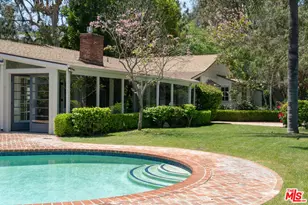 Gated and private, this lovely English country style home has 3 bedrooms, 3 bathrooms and an office, plus a detached studio. The backyard is a resort-like Oasis, with a heated pool, lush grassy lawn, patios for lounging and outdoor dining, all with jaw-dropping views of mountains, city lights, and the Hollywood sign. Inside, the sunroom offers a bar and connects to the formal living room, both opening to the pool. A formal dining room leads to a large galley kitchen with viking appliances and lots of prep space. The huge primary suite features an immense closet and a dreamy, luxurious bathroom with Anne Sacks tile, steam shower and heated floors. A special property for those looking for the ideal SoCal lifestyle: spectacular view, sunny pool, and seclusion.