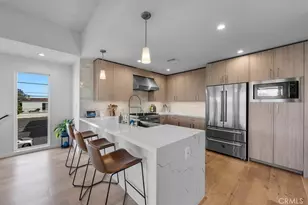 Enjoy modern contemporary beach living in a newer Manhattan Beach townhome! This stunning home is situated on a quiet cul-de-sac and has high end fit and finishes, including an open and bright living space with high 10' ceilings, wide oak wood floors and modern gas fireplace feature wall. A balcony overlooks the open neighboring green space, allowing the evening beach breeze. The kitchen includes stainless Bertazzoni Italia appliances including a freestanding range, refrigerator, dishwasher, microwave and ventilation system. All 3 bedrooms are located on the 2nd level with 8" wide oak wood floors throughout. The primary bedroom features a walk-in closet and the primary bathroom has dual sink vanities, Carrera quartz countertops and matching tile work, a spacious walk-in shower and a deep soaking tub. The other 2 bedrooms are generous in size and share a hallway bath. Washer & dryer inside unit and on bedroom level. As a resident of Manhattan Beach with the coveted 90266 zip code, you'll enjoy exceptional schools, beach proximity and easy access to major freeways.