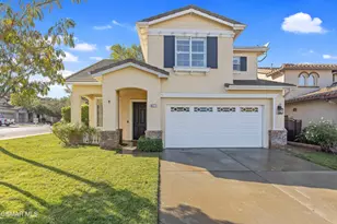 Welcome to this beautifully updated home, featuring a spacious open floor plan with a large kitchen that seamlessly flows into the family room, perfect for entertaining. The kitchen boasts newer soft-close cabinets, dual sink with a view of the backyard, recessed lighting, a generous pantry, and sleek stainless steel appliances. Gorgeous wood floors grace both the downstairs and upstairs, while wood shutters throughout add a touch of elegance. A large downstairs bedroom provides easy access to the conveniently located bathroom, making it ideal for guests or multi-generational living. The expansive primary bedroom offers serene views of the backyard and includes a large ensuite bath with dual sinks, separate shower, soaking tub, and a fantastic walk-in closet. Ceiling fans are thoughtfully placed in all bedrooms for added comfort, and an upstairs laundry room with cabinets adds convenience. You'll also appreciate the study/work station in the upstairs hallway, perfect for work or homework. Outside, the large private backyard is one of the largest in the tract, offering ample space for outdoor activities and relaxation. Conveniently close to the community pool. This home is truly a must-see. Located in the highly desirable Dos Vientos Ranch community, this home is within close distance of parks, hiking trails, convenient shopping, and top-rated Sycamore Canyon Elementary/Middle school. Don't miss the chance to call this stunning property your home!