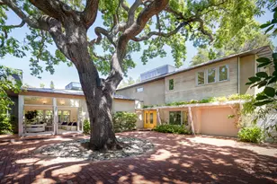 Designed by Jerome Buttrick and built in 2005, this striking modern home blends clean architectural lines with a strong commitment to sustainability. Located in sought-after Old Palo Alto, it is a rare fusion of refined design and high-performance living. Radiant heated concrete slab floors throughout, solar power, a standing seam metal roof, and FSC-certified framing are among its many eco-conscious features. Interior finishes include paper-resin counters, low-VOC materials, and cherry cabinetry crafted from sustainably harvested wood. Energy Star appliances, efficient windows, low-voltage lighting, and an indirect hot water heater further enhance efficiency. The floor plan is designed with many glass doors opening to a gated front courtyard anchored by a heritage valley oak or to the beautiful rear yard with large spa. A main-level den and adjoining bedroom suite is ideal for guests and the primary suite is upstairs complete with an outdoor shower room plus one bedroom customized for a remote work office. Just one mile from University Avenue and access to acclaimed Palo Alto schools.