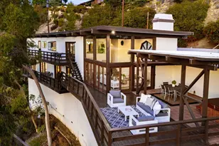 Tucked into the scenic hills of North San Rafael, this thoughtfully reimagined retreat combines timeless southwestern influences with modern luxury to create an unparalleled living experience. Set on a tranquil hillside with incredible panoramic views that include the Downtown LA skyline, this 3-bedroom, 2.5-bathroom home spans 2,380 sq. ft. of meticulously updated living space designed for relaxation and entertainment. From the moment you arrive, you'll be captivated by the home's serene ambiance. Dramatic tall ceilings and expansive, picturesque windows flood the space with natural light, while fresh interior and exterior paint accentuate the home's timeless charm. A romantic fireplace is the centerpiece of the living room with every room flowing effortlessly to one of the home's stunning decks, offering sweeping vistas that stretch to the horizon. At the heart of the home, the reimagined kitchen is a chef's dream, featuring custom cabinetry, a walk-in pantry, USB ports conveniently placed on the kitchen island, and new LG appliances along with a wine refrigerator. Designer finishes abound, with clean lines and a contemporary aesthetic that balances warmth and sophistication. The primary suite is a true retreat, boasting a spa-inspired bathroom with a luxurious soaking tub, custom LED-lit walk in closet, and private deck access for soaking in the serene surroundings. The secondary bedrooms are equally inviting, each with their own access to the outdoors, ensuring every guest enjoys the beauty of this hillside haven. The home's comfort is elevated with central air conditioning and heating, controlled effortlessly by a Nest thermostat, ensuring a perfect temperature year-round. Step outside to experience the magic of California living. Low-maintenance, drought-tolerant landscaping surrounds the home, creating a peaceful setting that's perfect for entertaining or quiet reflection. Whether enjoying a morning coffee with a sensational sunrise on the deck or hosting friends for an evening under the stars, the effortless indoor-outdoor flow of this home enhances every moment. With updates that include newer flooring, a brand-new roof, custom closets throughout, designer finishes in every bathroom, and newer garage doors, no detail has been overlooked. The property also features abundant storage options and a dramatic pass-through driveway with ample parking that includes a 3 car garage. Situated on the coveted Woodcliffe Road, this home offers both privacy and proximity, with easy access to Pasadena's vibrant downtown, charming local shops, hiking trails, and multiple golf courses nearby. Also a stone's throw to Old Town Pasadena, Eagle Rock, Highland Park, and close to the 134, 2, and 210 freeways. Come discover a rare blend of charm and contemporary elegance in a home that's as warm and inviting as it is breathtaking.