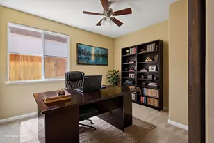 Back and Better Than Ever! Sophistication Meets Serenity in Diablo Grande! Welcome to 20629 Sarazen Place, a distinguished residence located within the exclusive, golf-course-inspired community of Diablo Grande. This elegant home boasts over 2,500 sqft of refined living space, set on an expansive 7,700+ sqft lot, offering both privacy and picturesque surroundings. Featuring three spacious bedrooms, three full bathrooms, and a versatile main-level den that is perfect as a home office or guest retreat, this home effortlessly combines functionality with upscale design. The soaring double-height ceilings in the formal living and dining areas create a dramatic yet inviting ambiance. The gourmet kitchen is a culinary delight, complete with stone countertops, a central island, stainless steel appliances, and a cozy breakfast nook ideal for morning coffee or casual dining. Retreat upstairs to the luxurious primary suite, where a private balcony offers tranquil views and a peaceful escape. The en-suite includes dual vanities, a soaking tub, and a separate shower for spa-like indulgence. Step outside to your own entertainer's haven featuring a built-in BBQ, pergola, and ample space for gatherings. Convenient access to local shopping is just minutes away.