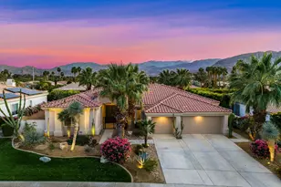 Poolside entertaining, starry night skies, mountain views and luxurious remodeled living spaces...experience the best of Rancho Mirage at this open and airy upscale home in the gated enclave of La Terraza. Double entry doors located beyond a gated front porch open to a great room with corner fireplace, dining area and backyard access in the single-level floorplan, which measures approximately 2,363 square feet. The great room flows seamlessly to a custom upgraded kitchen with oversized island, nook with open shelving, stainless steel appliances including a double oven, granite countertops, and custom flat-panel light-stained wood cabinetry including a pantry. Four stylish bedrooms and three baths include a chic casita with separate entrance, and a spacious primary suite with double tray ceiling, sitting area, backyard access, a walk-in closet with impressive custom built-ins, and a custom bath with large walk-in shower, two sinks, and floor-to-ceiling tile surrounds. Large-format tile floors, high ceilings, and custom paint and window treatments lend high-end flair throughout, an attached three-car garage opens to a driveway with generous room for guest parking, and an interior laundry room features custom built-ins and a sink. Located on a cul-de-sac street, the homesite extends about 10,454 square feet and showcases colorful well-maintained landscaping with custom lighting, and a private backyard with pebble-finished pool and spa, stone patios, and a loggia with misting system and retractable awnings. Located in the heart of Rancho Mirage, La Terraza is close to shopping centers, fine and casual dining, renowned golf courses, Sunnylands, and Palm Springs International Airport.