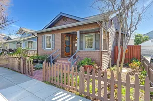 Lovingly maintained by long-term owners, this sweet Bungalow will tick all of your boxes! Two bedrooms & two bathrooms, beautiful hardwood floors, dining room with bay window, built-in china cabinet, & wainscoting, remodeled kitchen with pine cabinets, stone countertops & plenty of storage, & laundry room with extra cabinets. Spacious primary bedroom suite features two large closets & an Andersen sliding door to the backyard. Big detached office/workout room with skylight, and charming yard with cherry, mandarin, lemon, & lemon-lime trees. Dual pane windows throughout, insulated walls, redwood siding, 200 amp panel, new roof & HVAC. Walk to everything!