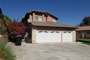 This 4 bedroom 3 bath home is in the Ridgeline neighborhood of San Bernardino and is close to California State University-San Bernardino. The entry opens to the living and dining rooms. There is a family room with fireplace off the kitchen. Tile floors are throughout the common areas with laminate flooring in all bedrooms. There is a bedroom downstairs with full bath close by. The large primary bedroom suite boasts a sitting area with lots of natural light, has large walk-in closet. The primary bathroom has a step-in tub and walk in shower. The laundry room is downstairs and in a separate room. The huge maintenance free backyard is perfect for half basketball court with plenty of room for other activities. There is room on the side of the driveway to park an RV.
