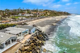 Unobstructed on-the-beach views extending from San Clemente's famous pier to the towering Dana Point Headlands set the scene for outstanding oceanfront living at this classic home in the private community of Capistrano Shores. A sunny patio introduces the single-level residence, which welcomes abundant natural light and breathtaking whitewater, Catalina Island and sunset views through massive floor-to-ceiling windows in the living room. Approximately 1,000 square feet, the open-concept design makes it easy to entertain by erasing boundaries between the kitchen, living and dining rooms. A peninsula bar for serving up appetizers and enjoying morning coffee opens to the living room from the kitchen, where white Shaker cabinetry, low-maintenance contemporary countertops, a Bosch dishwasher, and a range with smooth cooktop are on display. Two bedrooms and two baths lend versatility to the home, which is also appointed with high ceilings and woodgrain laminate flooring. Nearly 2,265 square feet, the homesite reveals a beach-front patio with retractable awning and a coveted location within Capistrano Shores. One of San Clemente's most sought-after addresses, the seaside enclave is moments from miles of beach trails, shops and restaurants along Avenida del Mar, Dana Point's beautifully revitalized harbor, famous surf spots, scenic neighborhood parks and the Ole Hanson Swim Club.