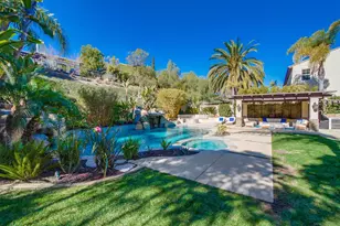 Make your long term home buying dreams come true with this exceptional grand estate! A true family home & entertainers dream. The stunning backyard features a resort like saltwater pool with 2 waterfall grottos, spa, Baja ledge, and custom lighting. Entertain large groups, with the outdoor kitchen, BBQ's, a covered outdoor living area equipped with space heaters, all seamlessly flowing from the living room and kitchen through the motorized Bluetooth controlled Summit California nesting door. Plus, there is a grassy area for play & multiple sitting areas to take it all in. The home is meticulously maintained and upgraded throughout. The chef's kitchen features quartzite counters, Viking 6 burner cooktop, GE monogram refrigerator, a staging nook, solid wood cabinets, & more. Entertain in your custom wine cellar, costing more than $150,000 with temperature control and HUE lighting with color changing settings. The huge master suite is elegant and private with a beautiful fireplace, built-in cabinets, a private balcony over the backyard, and large walk-in closet. The master bathroom boasts marble floors, quartzite countertops, a double marble shower, and free standing bathtub. A first floor bedroom & bathroom with convenient exterior access is perfect for guests. Additional features include owned & upgraded solar, 240 volt car charging port, a new pool heating system and filter, a whole house water filtration system, dual zone HVAC, custom drapes & blinds throughout, surround sound, regular pest maintenance, beautiful wood flooring, all bathrooms are remodeled,