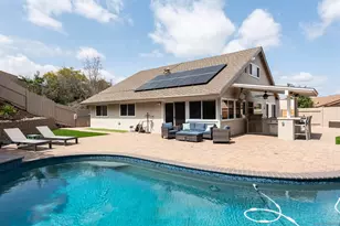 Update Westwood home @ the end of the Cul-de-sac, With Solar Owned, The curb appeal of this 5 Bedroom 3 Bath home with the primary bedroom on the main floor. As you drive up notice the paved driveway & freshly painted exterior. This home features dual pane windows, recessed lighting, crown molding in several rooms & a cozy fireplace. Stainless steel appliances, granite counters, beautiful cabinetry with lots of storage. Private pool & spa, Outdoor Kitchen. Over 100K in resent upgrades. See more details in the supplement.