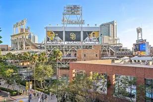 Top floor townhome (2-story) condo at the highly desirable ICON building in Downtown San Diego's East Village. These townhome style homes rarely become available, and give you separation between the living space (upstairs) and the bedrooms (downstairs). This West facing unit has a direct view of Petco Park, and is centrally located in the heart of Downtown San Diego. Modern finishes inside include: granite counters, stainless steel appliances, hardwood flooring throughout the living spaces, remote controlled blinds, in unit washer/dryer, 2 parking spaces (tandem), and a private storage in the underground garage.