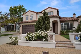 Welcome to your dream residence in the prestigious gated community of Saverne, nestled within the picturesque San Elijo Hills. Positioned at the end of a tranquil cul-de-sac, this stunning home offers breathtaking panoramic and mountain views, setting the stage for an unparalleled living experience. This well maintained home boasts a functional layout with 4 bedrooms, including a convenient entry-level suite. The versatile loft space is perfect for office or flex-space use, while the open-concept kitchen flows seamlessly into the family room. Elegance abounds with a formal dining room, soaring ceilings, and neutral finishes. The primary suite is a tranquil retreat, featuring ample storage and a spa-like bathroom with custom travertine tile, a spacious shower, and a soaking bathtub. The expansive backyard offers a perfect setting for relaxation and entertainment, with plenty of space to potentially create your dream pool, a built-in BBQ, and a fire-pit to enjoy the vistas. The property also features a 2-car garage with extra storage, whole house water filtration and alarm system. Located near Questhaven Park, scenic hiking trails, and within the top-rated San Elijo school district, this home embodies luxury, functionality, and access to nature's beauty. Experience the pinnacle of San Elijo Hills living in a home that artfully blends comfort, modernity, and stunning views.