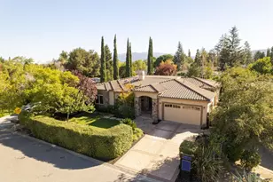 Custom-built, Mediterranean Revival masterpiece designed for luxury living. Completed in 2013, this one-of-a-kind exquisite home offers a grand chef's kitchen with professional-grade Thermador appliances, two ovens, two dishwashers, a six-burner gas stove, and dual sinks, making it the heart of the home. A large center island with a built-in wine rack and soft-close raised panel cabinets with ornate trim add sophistication. The open layout flows effortlessly into a spacious living room featuring 12 ft coffered ceilings, oversized floor-to-ceiling windows, and a gas fireplace. Elegant chandeliers throughout are included with the home. The primary suite is a serene retreat with a tray ceiling, backyard access, and a spa-like bathroom with a steam shower and soaking tub overlooking the rose garden. Step outside to enjoy a professionally landscaped backyard and waterfall fixture, complete with an outdoor kitchen, pergola, and a gas-powered fire pit. With a curated selection of fruit trees, tall Italian Cypress for privacy, and Wi-Fi-enabled irrigation, this home's outdoor spaces are just as impressive as the interiors. Dual-zone HVAC, custom-made curtains, and an encapsulated concrete perimeter round out the features of this exceptional home.