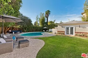 Tucked along one of Sherman Oaks' most picturesque tree-lined streets, this enchanting single-level residence is the very definition of California charm. Set in the desirable foothills just moments from Ventura Boulevard's premier dining and shopping, this home blends timeless elegance with thoughtful modern updates to create a private haven for inspired living. Sunlight pours into the interiors, illuminating gleaming hardwood floors, graceful crown molding, and a warm, inviting living room centered around a classic fireplace. The intuitive floor plan flows effortlessly into an elegant formal dining room and a chef's kitchen featuring granite countertops, rich custom cabinetry, stainless steel appliances, and a sunlit breakfast nook framed by garden views. A sunken family room with soaring beamed ceilings invites you to unwind, while French doors lead to a secluded outdoor paradise. Here, a sparkling pool is surrounded by mature greenery, multiple lounge areas, and absolute privacy ideal for serene mornings or lively entertaining under the stars. The spacious primary suite offers a peaceful escape with its own fireplace, French doors to the backyard, and a spa-like ensuite with dual vanities, soaking tub, and frameless glass shower. Additional bedrooms are thoughtfully placed for family, guests, or office use. A gated driveway leads to a detached garage, currently enjoyed as a bonus studio perfect for a creative workspace, gym, or guest suite. Overflowing with warmth, character, and curated style, this home is a rare gem in one of LA's most sought-after neighborhoods just blocks from Whole Foods, local boutiques, and beloved cafes and restaurants.