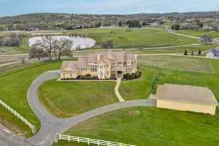 This custom-built home, nestled atop a hill spanning nearly 6 acres, provides breathtaking 360-degree views of local mountains, rolling hills, lush valleys, and a majestic pond with scenic horse trails weaving through the landscape offering a lifestyle of pure tranquility. The perfect fusion of luxury and practicality, it's ideal for equestrian enthusiasts as well as anyone seeking expansive space to relax, unwind, and enjoy everyday living. Whether you're a horse lover or simply looking for room to breathe, this property has everything you need to live your passions, including a fun-filled sport pool with continued views. This home is impressive, featuring a downstairs bedroom with attached full bathroom that gives your guest the ability to exit to backyard pool side, laundry chute, granite countertops, a walk-in pantry, crown molding, and a convenient powder room for entertaining guests. The primary bathroom is complete with jetted tub, large shower stall, marble, and a cozy fireplace that adds an extra layer of elegance. The 4-barn stall is equipped with a tack room and hay storage offering the option to convert it into additional living space. With ample parking space for all your guests, plus room for an RV, boat, and recreational vehicles, this property truly has it all!
