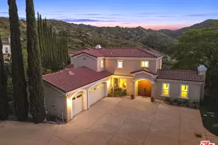 Famed Mediterranean architecture intersects with high modernism in this unique offering set high in the southern hills of East Simi Valley. Quite, tranquil, serene and crowning nearly a HALF ACRE ON TWO SEPARATE PARCELS WITH ROOM TO EXPAND, ADD AN ADU, ETC! The property resides in divine harmony with its idyllic, organic surroundings. Boundless, breathtaking unobstructed views are showcased from every vantage point through a continuum of floor-to-ceiling walls of glass and expansive view deck and terraces. A cool, contemporary urban hills retreat and perfect respite from everyday life's hustle and bustle. Styling is distinctive and comfortable; romantic and refined with a floor plan that provides gracious transition from room to room designed for easy relaxed living and entertaining. Interiors are casually elegant and airy, suffused in natural light. Baths feature fine lighting, fixtures and finishes. The dining room with butler pantry and wine bar lends itself ideally for formal and informal gatherings. Style, form and function converge in the gourmet kitchen with an array of stainless steel appliances, center island and breakfast bar. Beautifully bridging the aesthetic divide between structure and nature, glass atrium doors throughout bring the outdoors in and embrace the surrounding Santa Susana mountain range, elevating the property from mere home to private, privileged hideaway. Four bedrooms with four baths including a lux primary suite with private view deck round out the comfortable accommodations. Highlights include a direct access 741 sq.ft. 3-car garage and motor court for plentiful guest parking. With its chic interiors and world-class views, this home offers a unique style all its own and is the place and space to live and enjoy the urban hills lifestyle at its finest. Welcome!