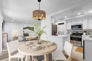 Opportunity IS Knocking! LOWEST priced property west of the 5 in Solana Beach! This charming first-floor single level unit (no stairs) is bathed in natural light and boasts a series of modern updates. Featuring contemporary hard surface flooring throughout, while the kitchen shines with Quartz countertops, updated cabinetry, and stainless-steel appliances. The dining area is flooded with natural light and has access to one of the two private outdoor spaces. The spacious living room is highlighted by a cozy brick-accented fireplace. The bedroom offers its own private patio and an en-suite bathroom, beautifully updated with new countertops, plumbing fixtures, and cabinetry. Additional conveniences include a detached one-car garage and a private stackable laundry. Nestled within the esteemed Triple Crown community, residents enjoy access to a community pool, spa & sauna, in addition to the desirable coastal location. Situated just blocks from the beach, Del Mar Fairgrounds, Cedros Design district, boutique shops and vibrant restaurants. Photos of dining room, living room, and patio virtually staged.