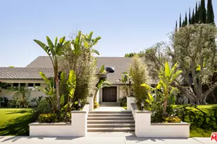 Where sleek Mid-Century design meets modern elegance, this turnkey Tarzana residence rests on a generous 17,000 SF lot within one of the neighborhood's most coveted enclaves. Set on a rare, flat cul-de-sac, the home offers a secluded sanctuary surrounded by lush landscaping and exceptional privacy. Spanning 4,424 SF, the two-level residence features 5 bedrooms, including a main-level primary suite and an upper-level primary retreat, along with an office, gym, and 5 bathrooms all thoughtfully designed for both comfort and style. The main level welcomes you with soaring ceilings and spacious living areas, including two additional bedrooms, a formal living room, dining room with a dedicated pantry for china and silver, family room with built-in bar, gourmet kitchen with Viking and Sub-Zero appliances, and a guest or staff suite. French doors open to a private backyard oasis complete with a heated pool and spa, built-in BBQ, and multiple dining and lounging areas. Upstairs, the upper-level primary retreat occupies the entire floor, featuring a charming fireplace, balcony with resort-like views of the grounds and mountains, and a spa-inspired ensuite with a soaking tub, steam shower, walk-in closet, and versatile spaces for an office, media room, gym, and more. Combining iconic Mid-Century design, modern finishes, and unparalleled indoor-outdoor living, this residence offers an exclusive opportunity to enjoy timeless elegance in one of the Valley's most sought-after neighborhoods.