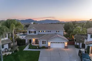 Crowne Hill Jewel ~ Gorgeous Pool and View Home nestled in the Rolling Hills just South of the Beautiful Temecula Wine Country. Crowne Hill is an upscale master planned community offering easy access to local parks, dog parks, award winning Temecula schools, golfing, shopping and dining. Just minutes from Farmers Markets, Promenade Mall, Temecula Old Town, Vail Lake, Lake Skinner, and Pechanga. This house boasts fabulous surrounding sunset, city and mountain views directly from the pool and back yard and offers a downstairs bedroom with bonus room and courtyard adjacent to a full hall bathroom. The Pebble Tec pool surface is 3 years new, and the solar panels are owned/paid!! Enjoy lovely sunsets from your resort backyard with elegant lagoon style pool with waterfall spa, palms, lawn, garden areas and mature trees. Lovely bamboo hardwood floors, sculpted carpet, replaced/upgraded windows and shutters, and open concept floorplan with all of the amenities! Downstairs formal entry living room, separated dining room, open spacious entertainers' kitchen with a secondary dining space and family room (with wood burning fireplace). The upstairs opens to a lovely large play/loft/office space, 2 additional bedrooms and the primary suite with another bonus room (now an exercise space). The primary bathroom is spacious and offers the luxury of a jetted bubble soaking tub, step in custom tile shower and a huge walk-in closet space. There is another upstairs dual sink full bathroom to service the other two bedrooms. The home is in great condition, the roof is concrete tile, and this is an end of cul de sac quiet street location. No road noise! A backyard built in BBQ and covered dining sunset view patio with surrounding landscaping top off this gorgeous Crowne Hill home. Come home, relax, unwind, dine and swim by sunset in your own lush backyard paradise.