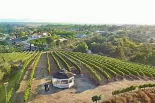 Rock Creek Vineyard is on a hilltop parcel with a commanding view of the Temecula Valley. It has a lot size of 217,364 sq ft. It is the very 1st property on a hill coming from De Portola Wine Country. It used to be a part of the same ownership of 38389 Rock Creek Cir, Temecula, CA 92592 but the owner has sold the house down the hill. Use that address to see the property on Google Map. There is another gate on De Portola Rd.