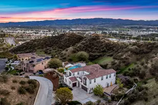 Welcome to this exquisite, serene, beautiful and private property. This home is a truly unique opportunity to own a Monument home in the gated community of West Hills. On the top of the hill, absolutely one of the greatest homes in the community. This home boast a 61,000 plus square foot lot. As you enter the gate of this castle, to the front door opening into a formal foyer, with high ceilings, custom lighting, tile plank flooring through this breath taking open and free flowing floor plan. This home has many meticulously thought out useful and beautiful details. Gorgeous formal dining room, that flows into the gourmet kitchen with high end Monogram appliances; including three convection ovens, 6 burner range, griddle, and a warming hood. Stone countertops, custom backsplash, and tons of cabinet space. The kitchen connects to the butler pantry, complete with wine cooler for the wine enthusiasts. As you go from kitchen into the family room, all open and free flowing from one room into the next, you will find versatile seating area off the family room, with wonderful sliding glass doors that open to outdoor living area/California room. There is room downstairs with an ensuite full bathroom that could also be used as an office or converted to a main floor bedroom, which would make it 6 beds. Gorgeous sweeping staircase with custom wrought iron banisters lead up to 5 bedrooms. The Master suite has a balcony, a sitting room which can be used as a bonus closet or office area, and a gorgeous bathroom with a large soaking tub, a walk in shower, vanity area all completed with stone counters and Lantern backsplash. The front bedroom has a private balcony, all the bedrooms are spacious. The yard is a private resort style oasis with all that you and yours may need to escape and truly relax, entertain, and enjoy. Remote controlled, salt water pool that has a slide and spa. Finished in an upgraded Pebble Tech that is called pebble sheen, which is gentle to your skin and provides a long lasting finish. An outdoor seating area with a fire rated patio cover, with TV connections, ceiling fans, gas heaters and surround sound! Custom Large built in BBQ & Bar with ample seating for 15 or more! A spiral staircase leads you up to a wonderful second story balcony of your master suite, perfect for enjoying the city lights, stargazing, and mountain views, as you overlook all on from this "Top of the Hill Oasis". The backyard is finished with custom Abalone & Seashell pavers and blue Spanish tile. Back and front yards are well thought out, with low maintenance landscaping. Ample parking between garages and front of home. Hard wired for security system -currently on with cameras, easily transferable to what you choose. Equipped with a fast charging outlet for all of your electrical/EV vehicles. Home also includes in ground surge protector and a water purifier system plus a PAID SOLAR SYSTEM!! What more can we ask for!? It's Everything!! So beautifully thought out with everything you could want!
