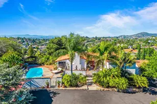 Tucked away at the end of a private drive, this one-of-a-kind true adobe block retreat captures the essence of Southern California living-where privacy, character, and sweeping valley views come together, all set on approximately 0.80 very special acres. From the moment you arrive, the home makes an impression. A beautifully designed front courtyard with custom concrete and inset pavers creates a warm, inviting entry, setting the tone for what lies beyond. Inside, authentic adobe construction, exposed beams, and Saltillo-style tile floors create a rich sense of texture and timeless charm rarely found in today's market. The updated kitchen blends function and design with Caesarstone quartz countertops, a Sub-Zero built-in refrigerator, built in drawer dishwasher, and a dual-fuel range, while the main living spaces center around a cozy fireplace and effortless indoor-outdoor flow. The flexible layout offers approximately 2,048 square feet with 3 bedrooms and 3 bathrooms. 2 of the bedrooms including the primary suite are on the main level. One of the 3 bedrooms completes a private lower-level suite with its own entrance, living space, and bath-ideal for guests, extended family, or creative use. Outdoors, the setting truly shines. A recently refreshed pool, shaded lounge areas, and a tranquil gazebo provide the perfect backdrop for relaxing or entertaining, all framed by panoramic views and mature landscaping. There is a small detached garage/shop along with additional outbuildings that provide a very flexible space. Despite its peaceful, tucked-away feel, the location is incredibly convenient-just moments from Brengle Terrace Park, walking distance to the Moonlight Amphitheatre, and close to shopping, dining, and freeway access. This is Vista. It is more than a home-it's a lifestyle property for someone who values character, space, and privacy in a setting that feels completely their own.