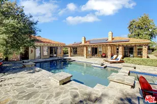Beautifully furnished and perfectly situated at the end of a cul de sac, this highly desirable single-story home is located in the gated, prestigious Signature Collection community. With 4 bedrooms, 3.5 bathrooms and a large stand-alone guest house with bathroom, this house is perfect for a growing family or a couple who likes to host and entertain! As you enter the bright, beautiful foyer, you will enjoy a large formal living room with gorgeous wood burning fireplace and large double glass doors that provide an expansive view of the pool and backyard. There is a delightful formal dining area and a library/den, off the foyer, that doubles as the ideal home office location. Entertain your guests and family in the gourmet Viking kitchen with 48" counter top range, large center island with breakfast bar, and a breakfast nook that connects to the adjoining family room with a dramatic floor to ceiling stone fireplace. The spacious master suite showcases a third fireplace, luxurious spa bath and separate jacuzzi tub. The additional bedrooms are ensuite. The guest house has a spectacular floor-to-ceiling custom tile shower, wet bar and plasma TV and works as separate guest quarters, game room, office or home theater! This home is carefully curated with beautiful stone floors, custom built ins, designer window treatments, gorgeous rugs, custom tile and designer appliances. This home is replete with a large pool, spa, custom barbecue area, and private backyard that backs up to North Ranch open space that connects to Lang Ranch open space. Hike and bike for miles in stunning parkland! Located in award winning Conejo School District. Short term pricing available.