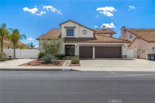 Spacious 5-Bedroom Wildomar Home with Pool, Spa & RV Parking. Welcome to 23115 Twinflower Ave, a beautifully updated 5-bedroom, 3-bathroom home in Wildomar with no HOA and low taxes. This two-story home features a bedroom and full bathroom downstairs, plus a bonus/office room, perfect for multi-generational living or a home office. For cozy winter nights, there is a gas fireplace in the family room and also one in the primary bedroom. The upgraded kitchen boasts granite countertops, a newer "smart", wifi-connected, 5-burner oven/range, stainless steel refrigerator, and a stainless steel microwave (all purchased in 2024). The home has been recently updated with new luxury vinyl plank (LVP) flooring and carpet (2024), a new HVAC system (2023), and a Quiet Cool whole-house fan for energy efficiency. Additional upgrades include a Nest thermostat, tinted windows, ceiling fans throughout, and automatic carriage lights on the garage. The three-car garage comes equipped with programmable garage door openers, a workbench and built-in storage cabinets. For added security, the home includes four exterior cameras and two motion-sensor lights. Step outside to your private backyard oasis, featuring a pool and spa (salt-ready, currently chlorine), both traditional gas heater and solar heating for the pool, and a covered patio-perfect for entertaining. The vinyl fencing, low-maintenance landscaping, and stunning hill views enhance the outdoor space. For those with toys or tools, this property offers RV/boat parking with a 30-amp outlet and included pool and garden sheds. Conveniently located near freeways, shopping, and dining, this home is move-in ready! Don't miss this incredible opportunity-schedule your showing today!