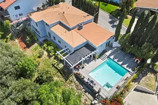 BIG PRICE REDUCTION and you get lovely sunset views! Enjoy hours of fun in the huge inviting pool with plenty of sun bathing decks, or just relax under the shade patio and take in all of the natural beauty. This is what southern California is all about. The downstairs open floorplan allows for ease of entertaining with two spacious family rooms set on either side of the dine in kitchen with breakfast bar. The one family room has slider doors to the shade patio and pool area and has an amazing view. The other family room/living room has plenty of space for a dining table and has a white brick contemporary fireplace with hearth & gas starter across the room. It has a slider door to a patio with a sitting area. The upstairs ensuite primary bedroom is enhanced by a huge bathroom with a spacious dressing area, double mirrored closets, vanity make up area, dbl. sink vanity with large mirror, & separate walk in custom shower & toilet room. Down the hall are 3 other large secondary bedrooms, & a main full bathroom w/tub & shower combo. Near the foyer is a large bonus room that is the converted garage with a closet and a slider door to the upper patio deck & pool area. Features of this home include; vaulted dbl. door entry, smooth ceilings, recessed lights, upgraded light switches, ceiling fans throughout, 2 yr. new AC/heat, copper plumbing & laminated flooring throughout. The exterior features; contemporary renovated pool with newer pool plumbing, pump, filter, heater pavers, & black fencing, & paver walkways around the property, plus 3 fruit trees & other mature trees & shrubs adding privacy. There is newer seismic retrofitting under the house, newer gutters, newer hot water heater & the roof has been redone within the last few years. The newer circular driveway adds convenience of parking. This So. Blvd location offers chartered schools, fabulous shopping & lovely dining options. Why wait?