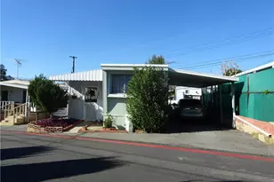 A cozy one bedroom one bathroom home, located in a neighborly and friendly 55+ park, was renovated in 2024. The owner gutted the bathroom and the kitchen. Enter through the lattice enclosed patio. Step up into the living room and new kitchen. New flooring throughout. Stainless steel sink, new cupboards, gas stove, refrigerator and laundry hook-ups just off the kitchen, new water heater. In the living room is a mini split system for your comfort. The bathroom has a new shower stall and just under the bathroom a new sewer line. The bedroom has a 10 foot wide closet and on the opposite wall is a 3 1/2 foot gentleman's closet and it also has a built-in dresser. In the back is a small fenced in yard, two sheds, the roof was repaired and no leaks at this time. On the roof is an empty cage, nothing inside. There is room for two cars to park in the carport. The park maintains the trees and the owners are responsible for bushes and other vegetation. The park credit score requirement is 700 or above. Low space rent including gas, water, sewer, trash, paramedics. Electric is SCE, billed separately to home owner. This home is being sold as is.