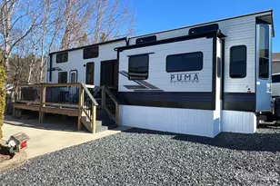Almost-new 2024 destination camper at Badin Lake-enjoy a lake view right from your sofa! This beautifully appointed camper is loaded with modern features, including a kitchen center island with sink, full-size side-by-side refrigerator, electronic blinds, electric fireplace, instant hot water, washer/dryer, and a spacious bedroom with a king-size bed. Dual sleeping lofts provide ample space for guests, and the step-in shower adds everyday comfort. Outdoor living is just as impressive with the push-button retractable awning over a covered deck, low-maintenance composite decking, and a concrete patio complete with firepit, picnic table, and storage locker. The sellers are even leaving the grill-just bring your clothes and start enjoying lake life! Located inside the gated waterfront community of Badin Shores Resort, residents enjoy amenities such as a swimming pool (seasonal), putt-putt golf, fishing pier, man-made sandy beach, designated lake swim area, waterfront boardwalk and more.