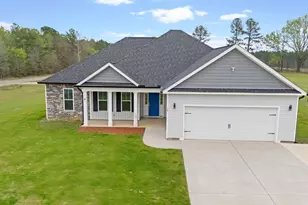 #DoNotMissOut Come see this modern comfort meets space and functionality on over an acre of land! This beautifully designed 3 bedroom, 2 bath home offers the perfect blend of style and practicality. From the moment you arrive, you'll appreciate the extended concrete driveway that is ideal for extra parking, including RVs, boats, and trailers. The inviting covered rocking chair front porch is perfect to relax after a long day at work. Step inside to discover luxury plank wood look vinyl flooring flowing throughout the home, complemented by tons of recessed lighting. The spacious great room features vaulted ceilings, creating an open and airy feel that's perfect for both relaxing and entertaining. The dining room is a true showstopper with coffered ceilings and classic judge's paneling, adding an elegant touch for gatherings. The kitchen is equally impressive, boasting granite countertops, a sleek grey gloss subway tile backsplash, stainless steel appliances, and a large island with seating for four. A bright breakfast area overlooks the expansive backyard, offering peaceful views of your private outdoor space. The thoughtfully designed layout includes a convenient cubby drop zone off the garage that is perfect for coats and everyday organization as well as a laundry room with cabinet storage and a folding area. The owner's suite is a relaxing retreat featuring tray ceilings with recessed lighting. The en suite bathroom includes a walk in closet, dual granite vanities, a garden tub with ceramic tile surround, and a separate tiled shower. The secondary bathroom offers dual vanity sinks, framed mirrors, and a shower/tub combo that is perfect for family or guests. Step outside to enjoy the covered rear patio with an additional concrete extension. This space is ideal for outdoor entertaining, grilling, or simply enjoying your wide open space. If you're looking for modern features, thoughtful design, and room to spread out this property checks all the boxes. Don't miss your opportunity to call this one home!