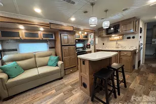 Resort living made easy-just bring your suitcase and start relaxing! This stylish 2017 travel trailer offers the perfect blend of comfort, convenience, and modern updates, creating a true "home-away-from-home" experience inside highly desirable Badin Shores Resort. Step onto the covered porch (roof added in 2021), fully set up for outdoor living with comfortable seating and ambient outdoor lighting- perfect for entertaining or unwinding after a day on the lake. Inside, the spacious living area is both inviting & functional, featuring a cozy fireplace beneath a wall-mounted TV. The layout also includes a center island kitchen equipped w/ a propane gas range, microwave, refrigerator/freezer, pendant lighting & double sink. Two comfortable seating options; reclining loveseat added in 2024 and a pull-out sleeper added in 2022. A pub style bar table with stools offers added dining space while opening up the floor space. The private bedroom offers ideal storage and a Queen size bed (the space can hold a king mattress). The bathroom has direct access from both the bedroom and the hall for added privacy & convenience. The backyard provides a shaded retreat ideal for gathering around a wood burning fire pit that sits on a terraced pebbled stone patio area, along with a 10x12 storage building for all your lake toys and outdoor gear w/ much added convenience inside. Refrigerator in Shed conveys. Whether you're searching for a weekend escape or a seasonal retreat, this property delivers comfort, style, and functionality. Additional recent updates include: refurbished deck with new handrails (2017), deck painted (2020), solar path lighting, metal roof on storage building (2023), fire pit and terraced yard improvements (2019 & 2021). BSR owners enjoy an abundance of amenities including a waterfront beach and w/ swimming area, outdoor pool, putt-putt, disc golf, sports courts, horseshoes, covered pavilions, picnic and grill areas, bath houses, fitness center, laundromat, Chapel, Restaurant and more. Conveniently located approximately one hour from Charlotte and Greensboro, with easy access to Asheboro, Albemarle, Salisbury, and surrounding areas. Don't miss this opportunity to own your own lake getaway at Badin Lake. Cash Only Sale. Deeded lot with title to camper to be transferred at time of closing.