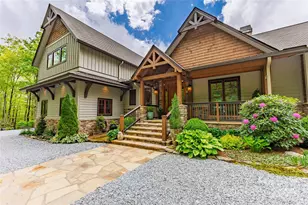 This impeccably maintained custom home in gated Whitewater Ridge community presides over beautiful gardens and offers a stunning long range Whiteside Mountain view. The 11 acre estate is surrounded by thousands of acres of National Forest, offering three hiking trails and access to waterfalls and the wild and scenic Whitewater River. Its setting among the native rhododendron and mountain laurel offers both privacy and quiet found in its natural surroundings. Throughout the home, you'll find thoughtful design and exquisite attention to detail. The main living areas are oriented to maximize the spectacular views, and the covered porch and decks feature unobtrusive post and cable railings. The great room is a highlight, with its soaring wood cathedral ceiling, wood floors, and a floor-to-ceiling stone and Italian tile wood-burning fireplace. The chef's kitchen is equipped with Thermador appliances, dual workstations, and ample ceiling-height cabinetry. A large pantry with an additional refrigerator/freezer, beverage cooler, adjustable shelving, and a recycle center is conveniently located nearby. The spacious primary suite located on the main level features a cathedral ceiling, a linear gas fireplace, custom maple and cherry cabinetry with a "waterfall" design, a zero-entry shower, and a heated bathroom floor. On the opposite side of the home's main floor, a private guest suite awaits, complete with wood floors, abundant natural light, a large closet, and an en-suite bath. The main level also includes a generous laundry room, a powder room, a home office and a small keeping room with a gas fireplace adjoining the kitchen. Upstairs, you'll find two additional bedrooms and a spacious bathroom with double vanities and a tub. A large family room is situated above the two-car garage. The lower level, built into the sloping terrain, offers an art room, extra storage space, a third garage for an ATV and easy access to the home's mechanical systems. This exceptional estate also features desirable amenities such as a 22Kw generator, a whole-house water filtration system, a dual fuel heating system, and energy-efficient spray foam insulation in the walls and ceilings, ensuring comfort and peace of mind.