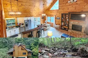 Nestled along the serene banks of Gaddis Branch, this well-maintained log home offers the quintessential mountain retreat. The interior features open floor plan, vaulted ceilings, elegant granite countertops, stainless steel appliances, a luxurious walk-in shower accompanied by a soaking tub in the primary bedroom, and a cozy wood-burning fireplace, blending modern comfort with rustic charm. The home also boasts a two-car basement garage and a screened-in porch, perfect for enjoying the soothing sounds of the creek. Conveniently located in Maggie Valley close to Waynesville, Cherokee, Harrah's Casino, and Asheville, this property combines natural beauty with contemporary luxury, making it an ideal base for exploring the region. Lower level features a bonus room with ensuite full bath. Lower level space has multiple uses!