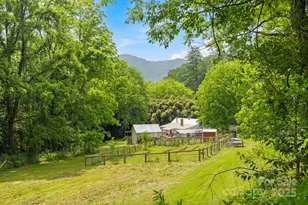 Picturesque Americana farmhouse set amidst bucolic rolling acreage, abundant gardens, spring fed pond and a quintessential red antique bank-barn! Multiple fenced in pastures, and giant vegetable garden, anchor this established homestead complete with new roof, and LVP flooring, updated electric, mini-splits (2), and freshly painted inside and out! NOW with Fiber Optic! Close to all conveniences and less than 30 minutes to downtown Asheville. An impressive build site with gently sloping access provides opportunity for amazing mountain and valley views, above a small yet abundant fenced orchard. Groomed trails for side-by-side ride to picnic perch up the mountain and to spring fed pond. Equipment and storage barn, chicken coops (4), 2 stalls and a hay loft, ceramic studio - all in place for the next lucky owner! And to top it off - equipment is for sale to make this a turn key for homesteaders, hobby farm enthusiasts or anyone looking for peace and tranquility!