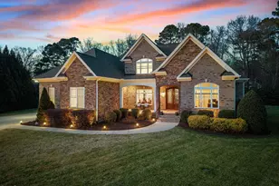 Stunning 4,072 SF custom home tucked on a quiet cul-de-sac in a beautiful small community with low taxes. Thoughtfully designed with 2 bedrooms on the main level, including a luxurious primary suite, ideal for everyday living. The main floor offers 10' ceilings, hardwood floors throughout, crown molding, wainscoting, tray ceilings, custom built-ins, a large executive office, and an oversized formal dining room perfect for entertaining. The primary suite features a spa-like bath with soaking tub, separate shower, private water closet, linen cabinetry, and an expansive walk-in closet. The living room includes a gas fireplace and flows into the chef's kitchen with a large island, 5-burner gas cooktop, walk-in pantry, butler's pantry, breakfast room, and access to the fully insulated 3-car garage. A sunroom overlooks the backyard and outdoor living spaces. Upstairs offers 9' ceilings, two additional bedrooms, a large recreation room, second laundry room, and walk-in attic storage. Enjoy exceptional outdoor living with a stone front porch, built-in saltwater pool, outdoor kitchen, firepit, patio, and brick shed for pool and lawn equipment-a rare blend of luxury, function, and location.