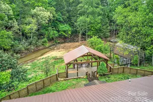 Creekside Peninsula Retreat with Second Level Barn Studio Apartment. A truly unique property located on a naturally formed peninsula where Cane Creek and Laurel Branch meet. The home is perched high on the property and remained completely dry during Hurricane Helene. Step outside onto the roofed back deck, where you can relax with a cup of coffee as you overlook your garden area and listen to the gentle flow of Cane Creek. Trout are often visible from the banks, and native plants and wildlife add to the peaceful, natural setting. The lower section of the lot was cleared by the flood waters, providing a blank canvas for the next owner's vision - whether that's a lush garden, fruit orchard, expansive lawn, or fire pit area...or all of the above! The property also features a second-level studio apartment above the barn with its own entrance. This flexible space is perfect for hosting guests, generating rental income, or serving as a home office, artist's studio, or retreat.