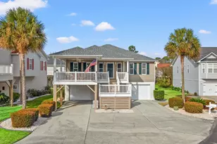 Live the Golf-cart-to-the-beach coastal lifestyle in this 5 bedroom 3 Bath spacious raised beach home tucked away on a quiet cul-de-sac in Salters Cove, one of the Grand Strand's most desirable coastal communities with quick access to Garden City & Surfside Beaches. This fabulous home offers multiple outdoor living spaces with a spacious front porch and shaded under-deck seating. Enjoy the Generous space and luxury finishes through out this home. Crown molding accents the main living areas paired with luxury vinyl and tile plank flooring, including a gas fireplace with custom built-in bookcases and cabinetry. The gourmet kitchen features abundant granite counter prep space, a work island, dedicated built-in coffee station, Soft close cabinetry, large pantry, and stainless steel appliances. The Chef kitchen flows to a large bright dining room. The Primary suite offers a private hallway leading to the dressing area with walk-in closet to the luxury primary bath with dual sinks, tiled shower and additional closet spaces. The other 2 bedrooms on main level feature sitting areas for both bedrooms which share a Jack & Jill Full Bath. Main level and lower level laundry areas for added convenience. Interior Staircase and outdoor access to a private mother-in-law suite includes a living area, full bath with walk-in shower, & two bedrooms. Additional features include large under-stair storage, auto-lighting in the garages and workshop. Tasteful furnishings convey with select exclusions. LOW HOA's & resort Amenities include saltwater pool, clubhouse & picnic area, fishing cove, playground, tennis & pickle ballcourts. Well-suited as a primary residence, vacation home, or coastal investment, close to beaches, pier, golf courses, Murrells Inlet MarshWalk, and Myrtle Beach attractions. Square footage is approximate and not guaranteed. Buyer to verify.