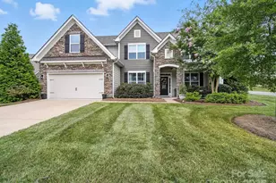 Former model home with designer details throughout! This open floorplan offers a dedicated office with glass French doors, elegant dining room with coffered ceiling, spacious family room with gas fireplace and built-ins, and a sunroom off the kitchen. The gourmet kitchen features quartz counters, tile backsplash, stainless steel appliances including gas cooktop, wall oven, microwave, dishwasher, and counter-depth refrigerator, plus a butler's pantry and drop zone. Main level guest suite with full bath. Upstairs you'll find a luxurious primary suite, three additional bedrooms, and a large bonus room. Outdoor living shines with a paver patio, sitting wall, and firepit. Resort-style community amenities and a prime location near Ballantyne conveniences with low Lancaster County taxes!