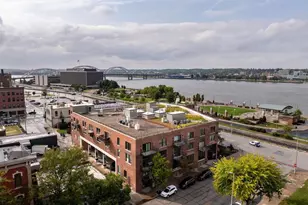 Urban living at its best! This spacious studio loft in downtown Rock Island offers incredible city views and a trendy industrial vibe within a vibrant multi-use condominium building. Step inside to find charming modern aesthetic, oversized industrial-style windows that flood the space with natural light, and a private balcony to take in the city sights! The open layout is flexible for both living and working, with room to design a separate home office. Nothing to do but bring your clothes, furnishings can stay! Fresh paint, updated kitchen, and stainless steel appliances! Water included! Enjoy the convenience of in-unit laundry, secure building, underground parking with elevator access directly to your floor, storage unit, and a rooftop garden overlooking the riverfront and Schwiebert Park. All of downtown is at your doorstep- pubs, restaurants, coffee shops, retail, grocery, churches, and the riverfront path are just steps away. If you're looking for a modern, low-maintenance lifestyle with unbeatable access to city amenities, this is it!