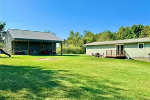 An incredible opportunity awaits in New Richmond! This four -bedroom, two-bath rambler is ideal for anyone seeking a beautiful family home with an outstanding workshop space. Located on a secluded, one-acre wooded lot, this property provides the perfect private escape. The main floor is an open, inviting space with a vaulted ceiling, connecting the living room and the stunning, newly remodeled kitchen. Prepare meals on the sleek granite counters and enjoy the modern appeal of stainless steel appliances, white cabinetry, and butcher block island. The home features a functional layout with two bedrooms and full bath on the main level. The beautiful oak staircase leads to the lower level which has been thoughtfully updated and includes a cozy family room, two more bedrooms with egress windows, and a brand-new 3/4 bath. The walk-out basement adds convenience and easy access to the backyard. The private backyard is home to a massive 36x32 pole shed with a 10x32 lean-to, perfect for a business owner, hobbyist, or car enthusiast. The heated floors, running water, and a built-in car hoist make this a one-of-a-kind workspace. The lean-to is not your typical lean-to, it offers an awesome entertaining area with lots of recessed lighting, concrete patio space and surround sound. Enjoy your morning coffee on the small, maintenance-free deck, taking in the serene, wooded surroundings. This property offers the perfect combination of tranquility and functionality. All but 2 bedrooms have been meticulously remodeled, rim joists have been spray foamed, walls and ceilings have been redone. Also an oak staircase to the lower level. Butcher block island, in-floor heat in main level bath.