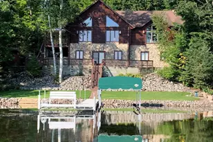 Beautiful-year-round Log home with 100 ft frontage on Roberts Lake-a desirable 435 acre full recreational lake on snowmobile and ATV trails. This home has 2 gas FP's, vaulted wood ceilings, Hickory cabinetry with granite counters in Kitchen, radiant floor heat in main level bath, asphalt driveway and trail to the water, and cedar decks that lead to patio and fire pit. Large upper loft easily accommodates 2 queen beds. Finished lower level walk-out contains a second living space, GFP, bedroom, bath, and laundry/utility room. 460 sq ft of additional area is partially finished for a bonus room with full size windows. Appliances, Hewitt Roll-A Dock pier, bluetooth electric boat lift, and whole house generator included. All furnishings negotiable for Turn key home possibility. Don't hesitate.