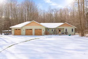 High End, Custum built.3 bedroom 2 1/2 bath Ranch on 2 wooded acres! Solid Hickory kitchen cabinetry. Open concept eat-in kitchen, dining and living room with hardwood flooring. All appliances included. Vaulted ceilings. Sliders lead out to the deck and overlook new landscaping. Main bedroom suite has huge walk-in closet and private bathroom with 2 sinks and whirlpool tub. Main floor laundry room in half bath. Down stairs the potential is limitless, a 4th bedroom and family room. A fourth bathroom is plumbed here also. Comfortable in-floor heating throughout. Bar, pool table and two L.P. tanks included. Spacious 3 car garage. The updates: New boiler 11/25, raised garden beds with irrigation and fence 2025, A/C 2023, deck boards and railings 2022, main in-floor heating with 3 zones 2020, water softener 2017.
