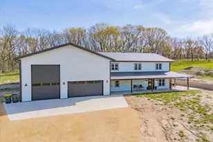 Beautiful custom home in Iowa County nestled on 7+ acres. This 2022 custom built, 3,000sq. ft. home offers a private oasis with country views and modern amenities. Featuring an open-concept ML with vaulted ceilings in the living room, large office, quartz countertops, a large island and hidden spacious pantry in the kitchen. The generous primary suite includes a soaking tub and walkout to the back patio with hot tub, and walk-in closet with laundry. The upper level includes loft area overlooking living space, 4 spacious bedrooms, 2 additional bathrooms and another laundry space. A massive 40'x 55' garage is attached to the home that includes in floor radiant heat and zoned heating. Don't miss this rare opportunity for country living just minutes from town.