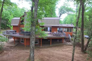 Discover serenity with this 6-bedroom, 3-bath lakefront haven. Expansive living room, with vaulted ceilings and floor-to-ceiling fireplace. Relax in the new hot tub on it's own private deck with captivating lake views. Find tranquility in the 4-season sunroom, nestled in the woods. Entertain family and friends on the expansive lakeside deck! This exceptional property boasts a lower-level game room with a built-in bar and an additional family room with a fireplace, offering ample space for recreation and relaxation. Sold turn-key with furnishings and more, this home is move-in ready, featuring numerous updates throughout. 3-car detached garage, lakeside shed, blacktop drive and ample parking. 160 feet of level sand beach and private boat launch on this crystal-clear lake where you can enjoy boating, swimming & gathering at the firepit. UTV/snowmobile trails right from your door, and Voyager Village just minutes away. An incredible opportunity to own your slice of lakeside paradise!