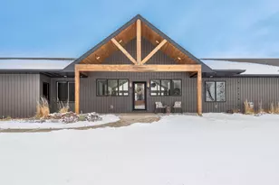 Showings begin 02/07/2026. Country living meets purposeful design in this custom-built 2021 ranch, on 9.72 acres. Designed for everyday comfort and elevated entertaining, the open-concept layout showcases vaulted ceilings, rich finishes, and a wood-burning fireplace that anchors the feeling of home. A gas fireplace brings warmth to the lower-level family room. The kitchen is a true showpiece, featuring quartz countertops, a Monogram range with pot filler, custom cabinetry, and a generously sized walk-in pantry. Thoughtful spaces include a stylish mudroom/laundry, a dedicated office, and a serene primary suite offering an ensuite bath with soaking tub and beautifully tiled showers throughout. Outdoors, the lifestyle continues with a back patio, raspberry plantings, and garden space. Attached garage is 30x40. The barn features a heated 8x10 milkhouse with water and 6.4 acres of fenced land, creating opportunity for a hobby farm, equestrian use, or refined rural living.