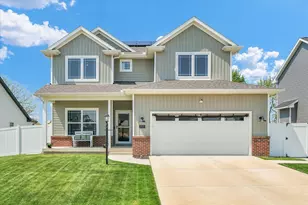 Welcome to this stunning, move-in ready home built in 2023, offering modern comfort and thoughtful design throughout with many upgrades! This 4-bedroom, 2.5-bathroom home features an open layout ideal for today's lifestyle. The kitchen is a showstopper with sleek quartz countertops, backsplash, a spacious island, and a walk-in pantry - perfect for both everyday living and entertaining. The kitchen flows seamlessly into the inviting living area, complete with a cozy gas fireplace. Just off the garage, you'll find a functional mudroom with built-in storage to keep things organized. French doors lead to a dedicated office space, ideal for working from home. Upstairs, enjoy the convenience of a laundry room and appreciate the primary bedroom complete with a vaulted ceiling, double vanity, and a large walk - in closet. The large, freshly sodded backyard is fully enclosed with a vinyl privacy fence! Check out the automatic pet door as well, giving your furry friends freedom to roam. A beautifully extended patio and a new sidewalk lead you to the front of the home - great for gatherings and outdoor living. Additional features include a full unfinished basement to turn your visions into reality! Seller will be leaving the purchased drywall that is currently there along with the bathroom shower that is bought and ready for placement! This home also will come with a radon mitigation system, owned water softener, and leased solar panels to help reduce utility costs. This home blends style, function, and energy-conscious living - a must-see! Schedule your showing today!
