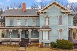 Experience the grandeur of a well preserved 1865 historic home, where timeless elegance meets modern comfort. This stately residence offers an impressive 3,700+ square feet of living space, thoughtfully arranged across multiple levels, all situated on a generous 1.38 acre corner lot. Step inside to discover six cozy fireplaces adorned with elegant marble mantles, while original pine hardwood floors flow throughout, telling stories of generations past. The updated kitchen stands as a testament to contemporary luxury, featuring custom poplar cabinetry, gleaming granite countertops and stainless steel appliances. A convenient butler's pantry adds both charm and functionality. The home's 6-7 bedrooms include five on the second floor, with a spacious primary suite boasting a private adjoining bathroom. Modern conveniences like an upper level laundry room blend seamlessly with period details, including a stunning cherry staircase that serves as a focal point of the home. The main level offers versatile spaces, including a formal dining room perfect for entertaining, a welcoming parlor & a flexible den that could serve as a home office. Below, a finished walkout lower level provides additional living space. Outdoor living is equally impressive with a deck overlooking the fenced yard, while a 2 stall Morton outbuilding provides ample garage space. The property's location near park and high school adds to its appeal, making this historic gem a truly special home.