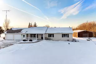 No Showings until Saturday January 10, 2026 at Noon. Country Bliss and Ease with this 3 Bedroom ZERO-Entry Ranch on 9.28 Acres. Property has a 45 X 30 Pole Shed with a Concrete floor and Electric, a Large 2-Car Attached Garage with convenient access to the Lower Level, Lower Level is plumbed for an additional Bathroom. Seller Improvements include Roof, Furnace, Water Heater, Well Pressure Tank, Composite Deck, Dishwasher, Washer, Dryer, and Landscaping.